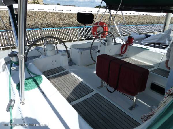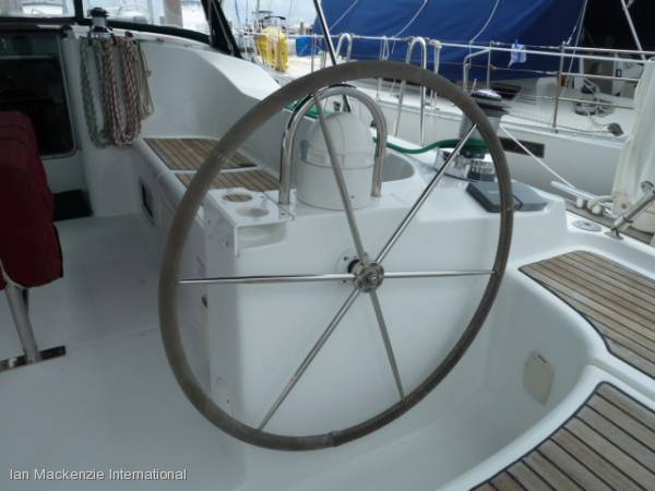 High quality leather wheel covers, Lewmar self tailing winches, 1x Electric Halyard Winch in Cockpit.